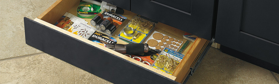 Now, an easy modification to almost any cabinet, toekick drawers provide additional storage space in an otherwise unused area to easily store flat kitchen accessories like baking sheets and placemats.