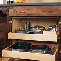 - 5/8" nominal thick solid material drawer and roll tray sides, backs and fronts