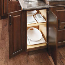 For convenient vertical storage, material tray dividers are available for use in most wall, base, oven, tall and full height cabinets.