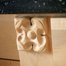 Create a smart statement at a sink or cooktop area by supporting it with decorative legs that suit your style. If you enjoy furniture-type detailing, your designer might suggest a decorative foot application to the toe kick space on selected cabinets.