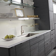 Art Deco design, first common in the 1920s, is still very sought after by today's homeowners. This everlasting motif is being captured in kitchen and bath designs alike with stunning, horizontal and vertical lines of color and cabinetry accented by frosted glass inserts and chrome elements.