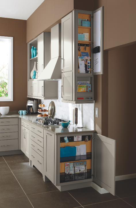 More tips from Pierce are included in the article along with information about Diamond’s Base Cabinet with Can and Wine Bottle Pullouts, Base Message Center Cabinet and Cooking Utensil Divider, which offer easy organizational solutions that make use of every corner.