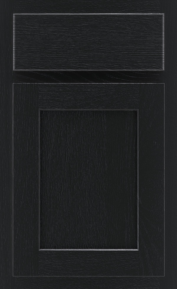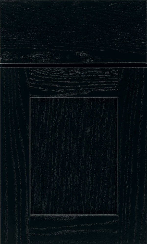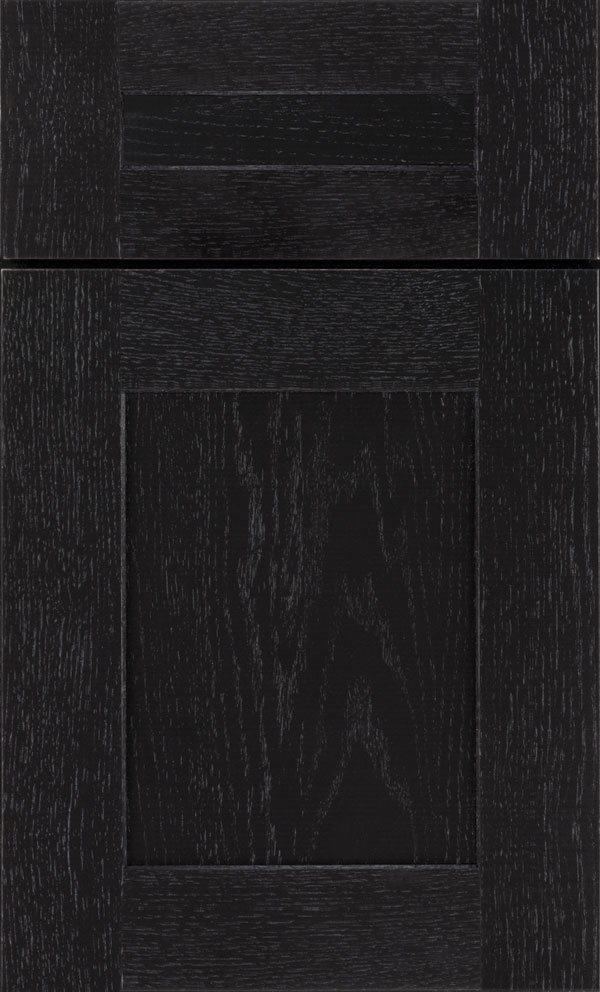 A Black cabinet finish/color has become a classic over time, and for good reason. Whether on its own, paired with white, or mixed with material finishes/colors, black can always be counted on to make a powerful yet pretty statement. Mixing it with the strong graining of Oak adds an additional dramatic touch.