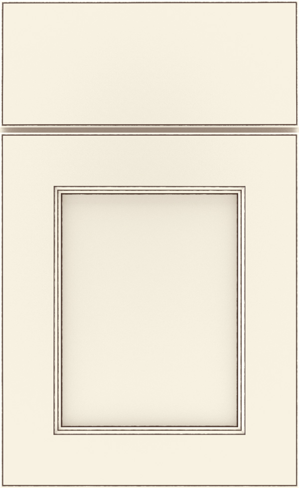 Coconut is a milky off-white cabinet paint on Hardwood that provides a clean, neutral setting without a hint of harshness. The addition of Amaretto Creme cabinet penned glazing dramatically accentuates details, adding pretty contrast and dimension.