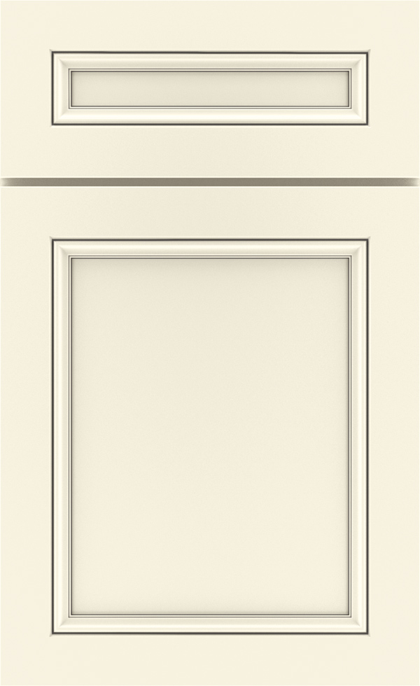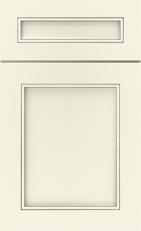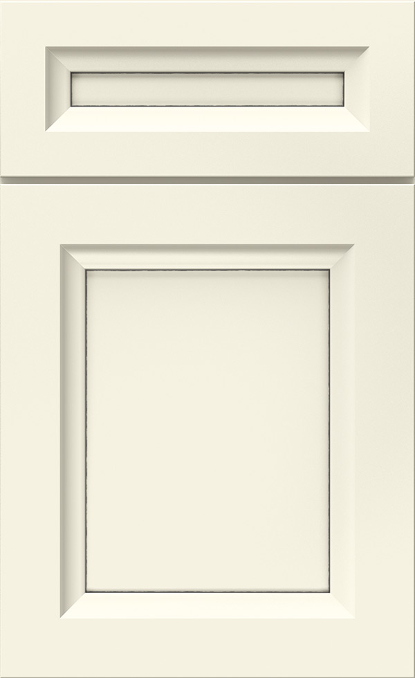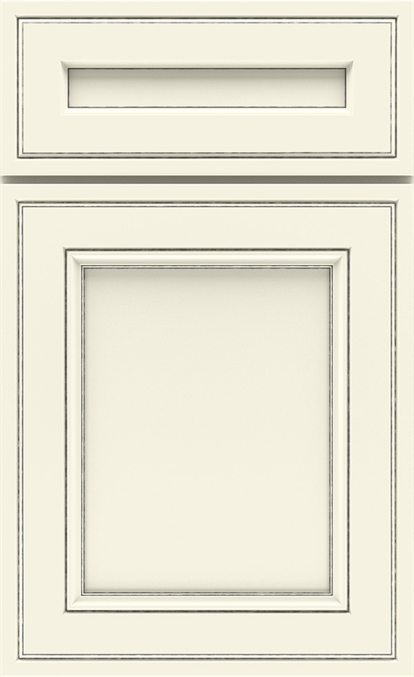 Coconut is a milky off-white cabinet paint that provides a clean, neutral setting without a hint of harshness. The addition of Grey Stone cabinet penned glazing accentuates details, adding a touch of depth with cool notes of soft gray.