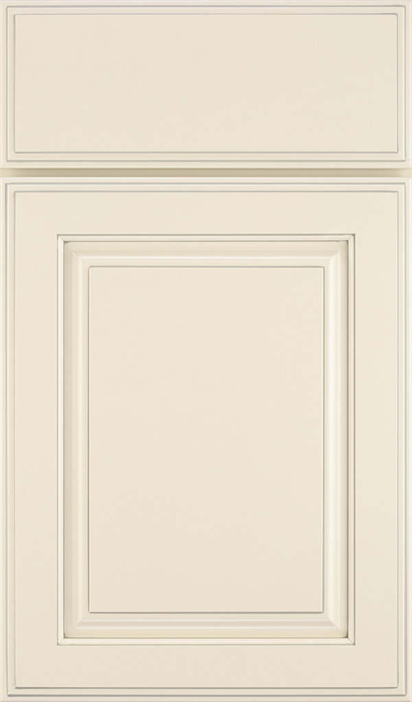 Coconut Meringue glazed cabinet finish/color on Maple is a warm, off white hue with a shade of light detailing.