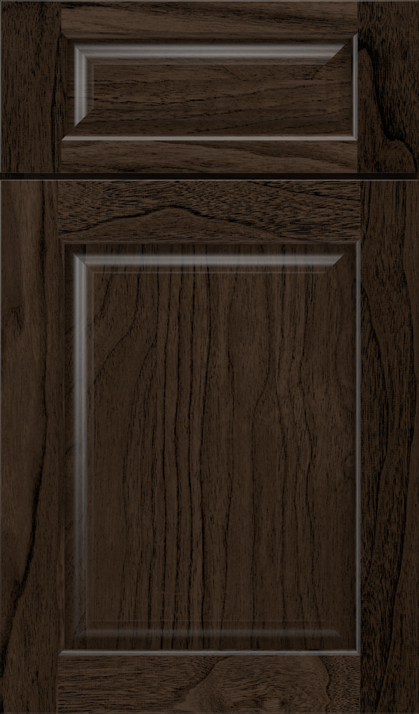 Roan is a ceruse finish that adds a black washed look to the arid brown Morel on Walnut.