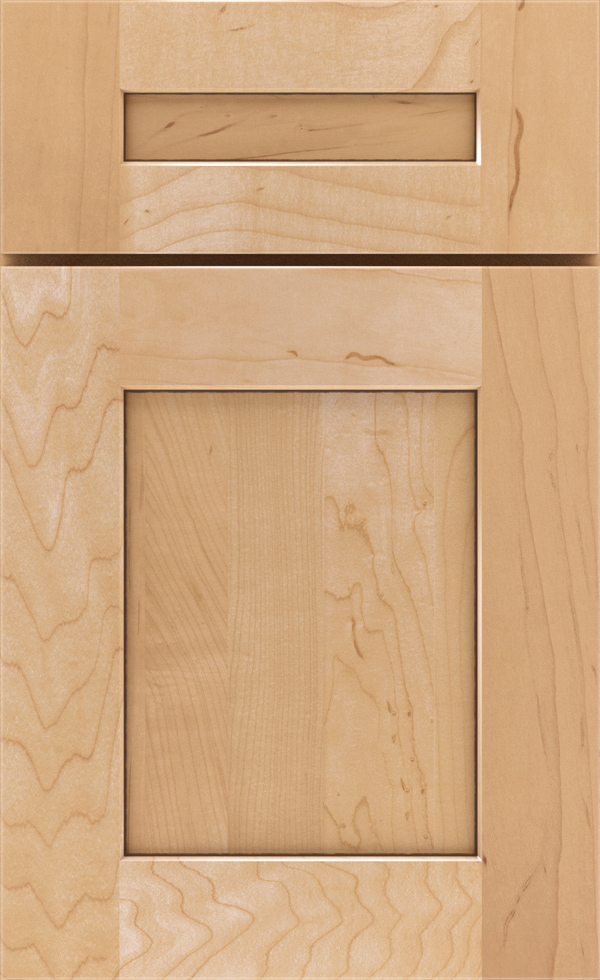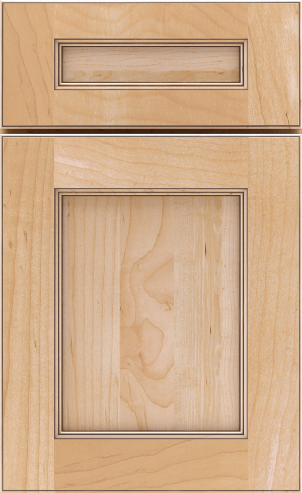 Natural Amaretto Creme Penned glazed cabinet finish is a clear coat finish which allows the beauty of Maple wood grain to show through, then topped with a warm brown glaze.