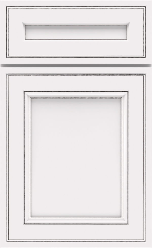 White paint on Maple is a clean but subtle, true white for a light and airy look. The addition of Amaretto Creme cabinet penned glazing dramatically accentuates details, adding dimension.