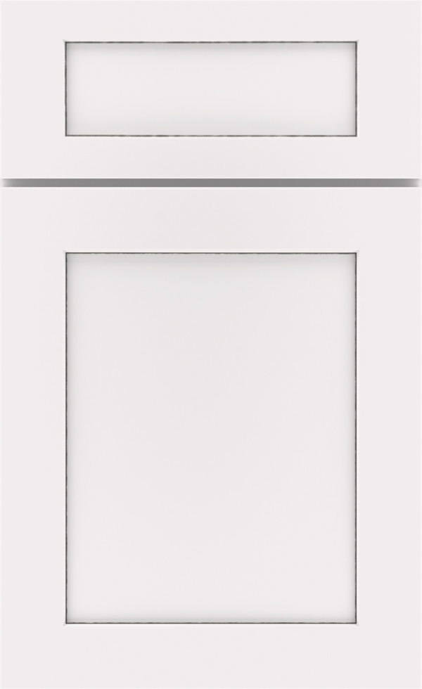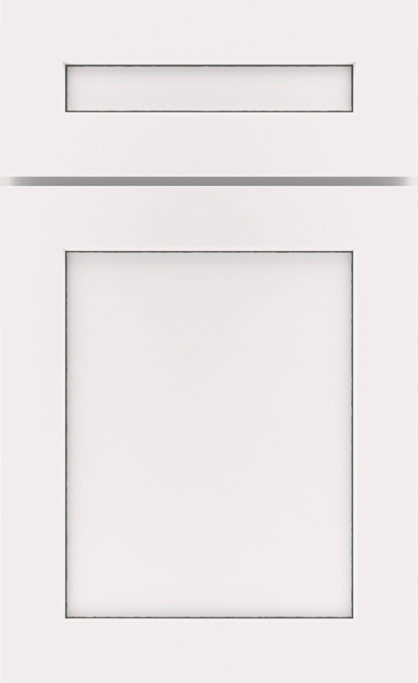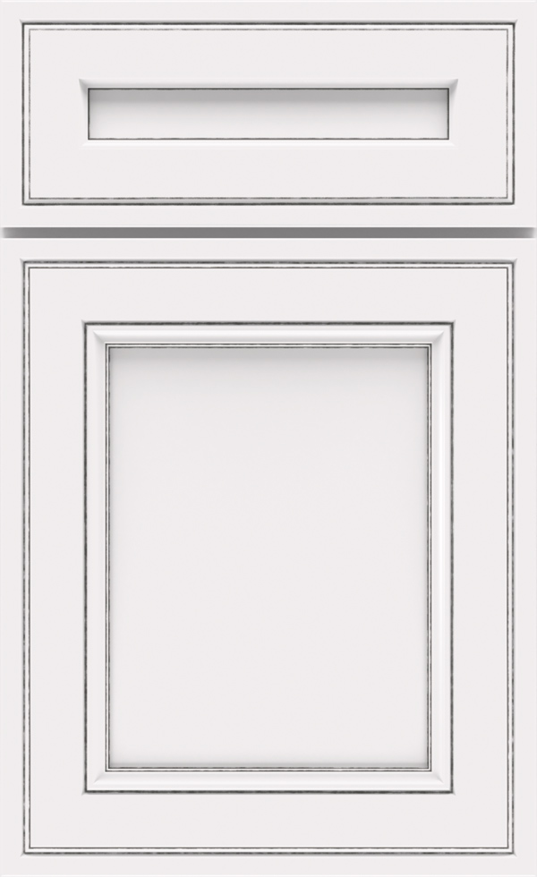 White paint on Maple is a clean but subtle, true white for a light and airy look. The addition of Grey Stone cabinet penned glazing accentuates details, adding a touch of depth.