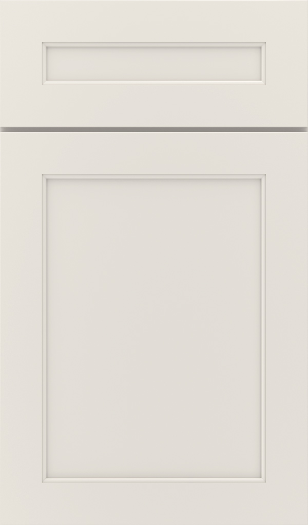 A two-tone kitchen featuring Boardwalk’s light cherry stain on lower cabinets and Icy Avalanche’s cool white paint on upper cabinets brings intrigue and subtle variation into the kitchen.
