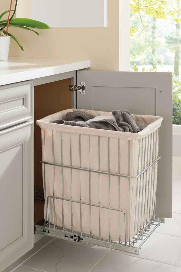 Have a hamper right where you need it, yet tucked away inside a cabinet out of sight, but not out of mind.