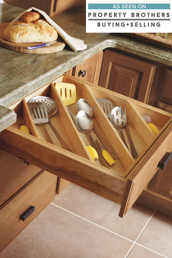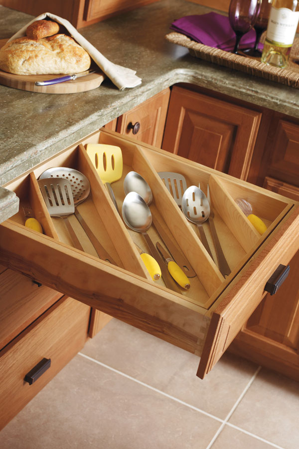 Make a wider drawer work smarter for you by including a Cooking Utensil divider that keeps larger serving and cooking utensils organized and at your fingertips.