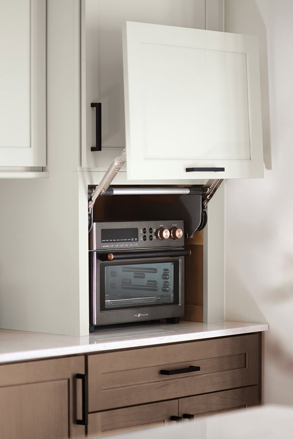 Place your Air Fryer, toaster, or other typical countertop accessories in an Appliance Garage with a Vertical-Lift Door that is concealed yet still simple to reach.