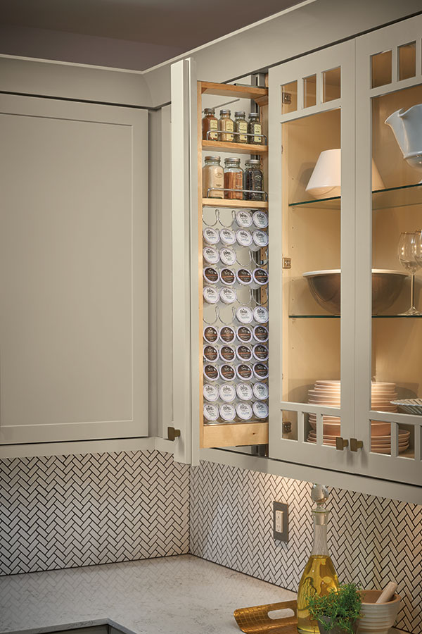 Enjoy practical function with our K-Cup Pullout Storage Cabinet that holds 44 pods and easily glides out with a gentle pull. Perfect for adding organization to a small space that often goes unused.