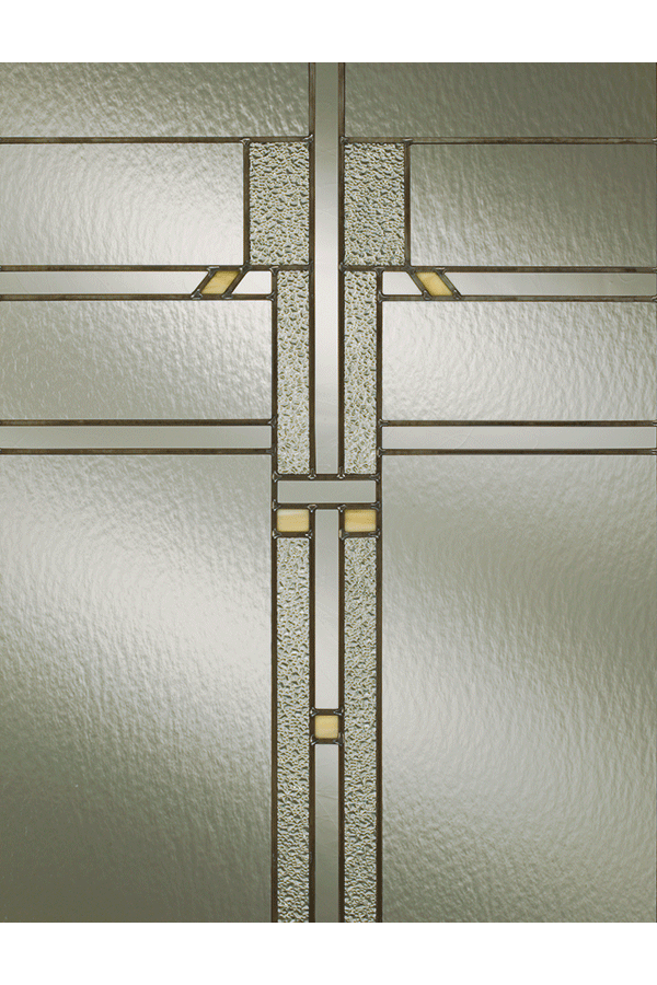A true Craftsman style door hearkens the prairie stylings that made Frank Lloyd Wright and the Arts & Crafts movement famous. Differing variations of pebbled glass, coupled with amber opaque glass make this door style a showstopper in any design.